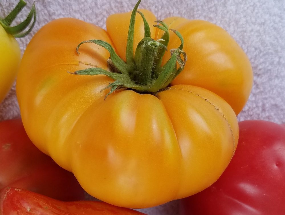 Last year we introduced several beefsteak heirloom: ‘Dester’ (a large pink beefsteak), ‘Dr. Wyche’s Yellow’ (orange beefsteak), and ‘Black Krim’. Each of these is returning for 2018! ‘Dester’ produced huge, meaty fruits for us, and the sweet flavor of ‘Dr. Wyche’s’ was incredible. We also got loads from the ‘Black Krim’.
