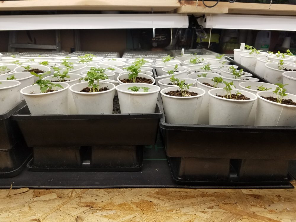 Once seeds germinate, remove the growing containers off of the mat (you don’t want to “cook” the roots – these are words of experience!!).