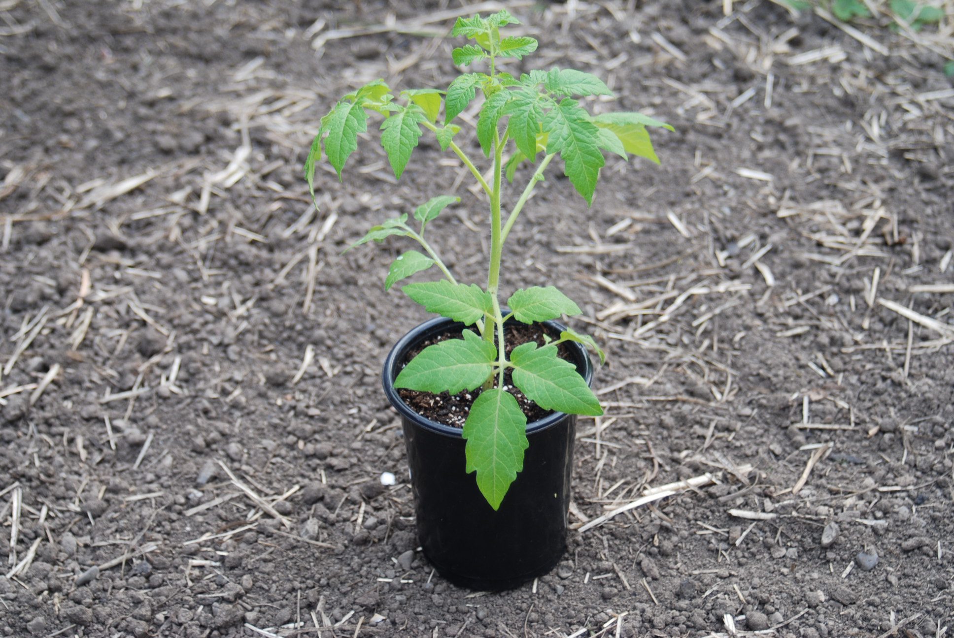 - Plant your tomato starts deep! Tomatoes grow roots along their stems, so planting them deep ensures good root development. When you get your transplant home, remove the bottom set of leaves and plant to just below the next set. Your tall plant may suddenly look shrunken, but you will be amazed at how quickly it sprouts up (and those roots grow out below the surface). If your tomato starts are leggy (tall and thin) you can plant in the “L” method. Dig an oval hole and lay the root ball and stem on its side, gently bending the stem up. Be careful not to snap the stem.