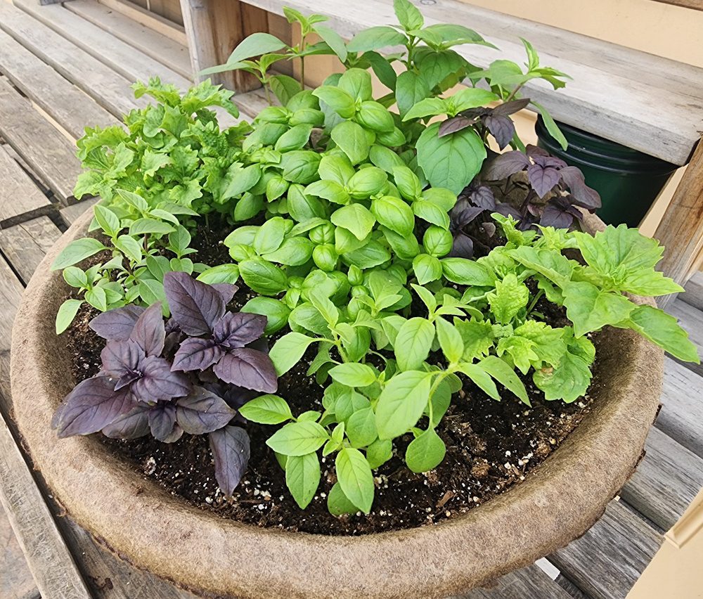 Basil varieties include: Genovese, Thai, Cinnamon, Lemon, Purple Ruffles, Rosie, and Spicy Saber.